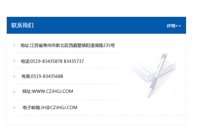 地址:常州市新北區友邦商務大廈1幢16、17層  電話:0519-85101652  傳真:0519-85112595  郵編:213022  網址:www_cz-jiayue_cn.shenglianzhuangshi.com  郵箱:xiajifengaa@163.com